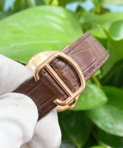 interchangeable 18K rose gold (750/1000) deployant buckle, calendar aperture at 3 o??clock.