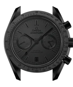Giving this model its nickname are its brushed blackened Moonwatch-style hands and blackened applied indexes ?C all of which are coated with black Super-LumiNova. The familiar sub-dials at 3 and 9 o??clock are also matt black and the black ceramic bezel has a black lacquered tachymeter scale. At its heart is the OMEGA Co-Axial calibre 9300.