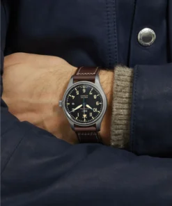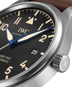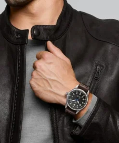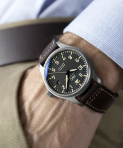 Titanium case,?Automatic, self-winding,?Diameter 40.0?mm,?Black dial with luminescence,?Brown calfskin strap,?Strap width 20.0 mm.