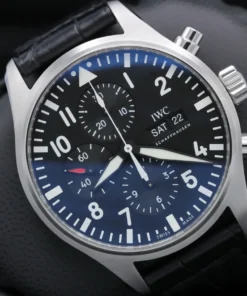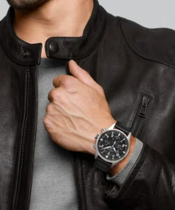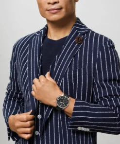 Stainless steel case with a stainless steel bracelet. Fixed stainless steel bezel. Slate Gray dial with Silver-tone hands and Arabic numerals with luminescent finish. Minute markers around outer rim, self-winding, diameter 43.0 mm.