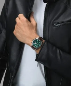 Stainless steel case,?Automatic, self-winding,?Diameter 41.0?mm,?Green dial with luminescence,?Brown calfskin strap with EasX-CHANGE system,?Strap width 20.0 mm.