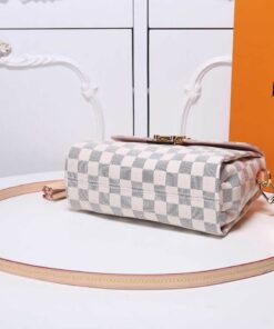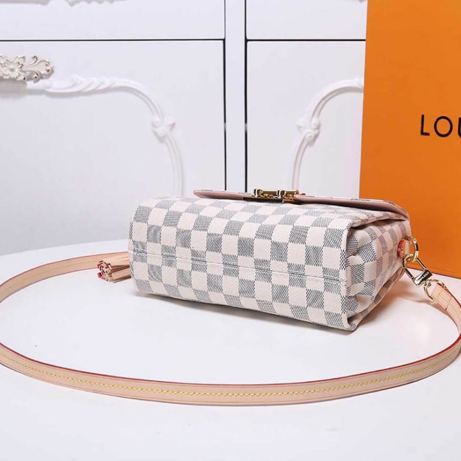 A compact bag with modern lines, the Croisette in summery Damier Azur canvas boasts sophisticated details (note the signature S-lock) and a casual-chic allure. The removable leather tassel adds a touch of fun. Sized to fit the essentials plus a long wallet, this versatile piece can be hand-carried, slung over the shoulder or worn cross-body.