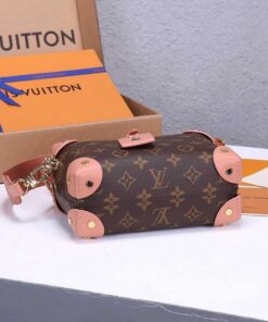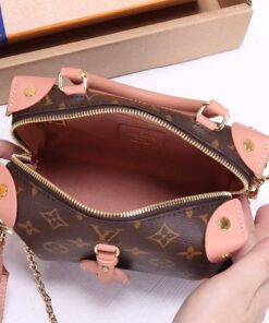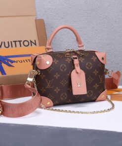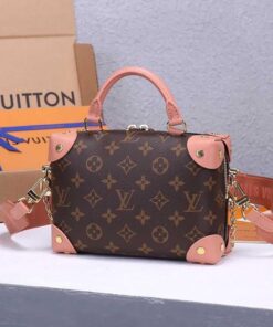 The distinctive Petite Malle Souple is a soft handbag steeped in the House history. The Monogram canvas, riveted leather corners, and leather name tag all evoke Louis Vuitton??s legacy as a trunk maker. A gold-color nautical chain and wide removable strap, with Louis Vuitton Malletier embroidered on it, bring up-to-the-minute style.