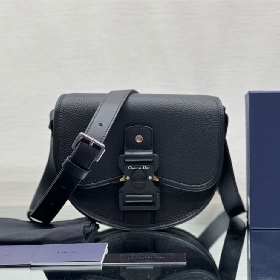 Aluminum buckle with Christian Dior signature and CD letters on flap closure