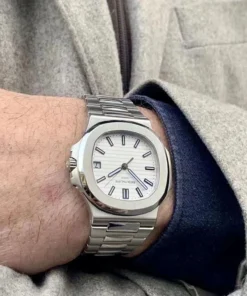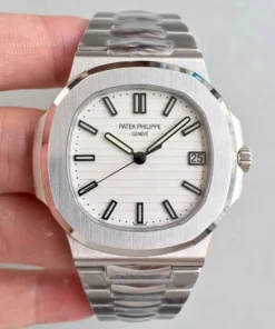 Patek Philippe Nautilus Silvery White Dial Stainless Steel Mens Watch 5711-1A-011.