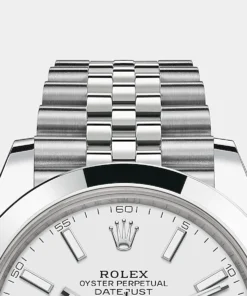 THIS OYSTER PERPETUAL DATEJUST 41 IN OYSTERSTEEL FEATURES A WHITE DIAL AND A JUBILEE BRACELET.