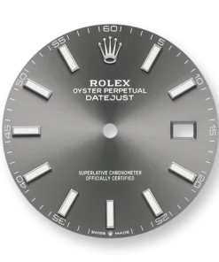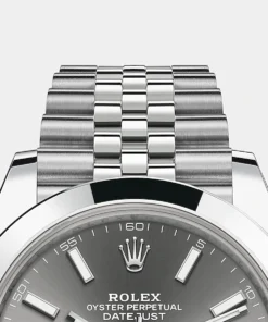 THIS OYSTER PERPETUAL DATEJUST 41 IN OYSTERSTEEL FEATURES A SLATE DIAL AND A JUBILEE BRACELET.