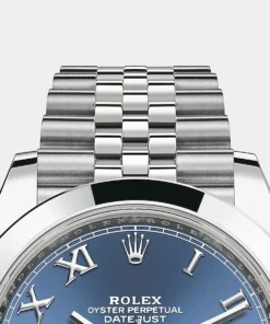 THIS OYSTER PERPETUAL DATEJUST 41 IN OYSTERSTEEL FEATURES AN AZZURRO-BLUE DIAL AND A JUBILEE BRACELET.