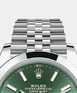 The design, development and production of Rolex bracelets and clasps, as well as the stringent tests they face, involve advanced high technology. And, as with all the components of the watch, aesthetic controls by the human eye guarantee impeccable beauty. The Jubilee, a supple and comfortable five-piece link metal bracelet, was designed and made especially for the launch of the Oyster Perpetual Datejust in 1945.