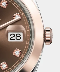 THIS OYSTER PERPETUAL DATEJUST 41 IN OYSTERSTEEL AND EVEROSE GOLD FEATURES A CHOCOLATE, DIAMOND-SET DIAL AND A JUBILEE BRACELET.