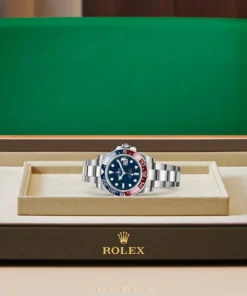 In addition to conventional hour, minute and seconds hands, the GMT-Master II features an arrow-tipped hand, which circles the dial once every 24 hours, as well as a bidirectional rotatable 24-hour graduated bezel.