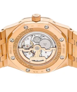 blue sub-dial with rose gold luminescent applied hour-markers and Royal Oak hands, blue inner bezel