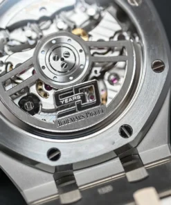 This 41 mm stainless steel Selfwinding Chronograph is endowed with the latest Royal Oak design evolution and encompasses a ??Grande Tapisserie?? dial in the iconic “Bleu Nuit, Nuage 50” hue.