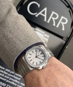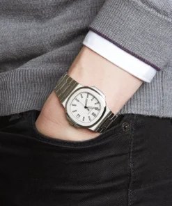 The Nautilus Ladies Self-Winding Watch is made of stainless steel, expressing casual elegance and ultimate femininity, with a choice of two new dial colors: silver white and smoke gray.