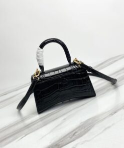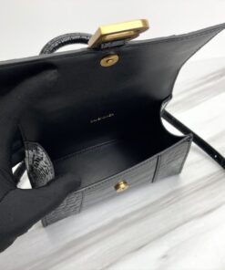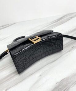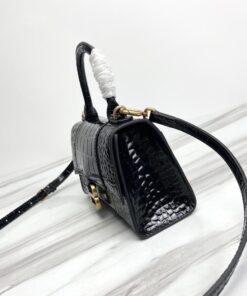 Hourglass XS Handbag in black crocodile embossed calfskin