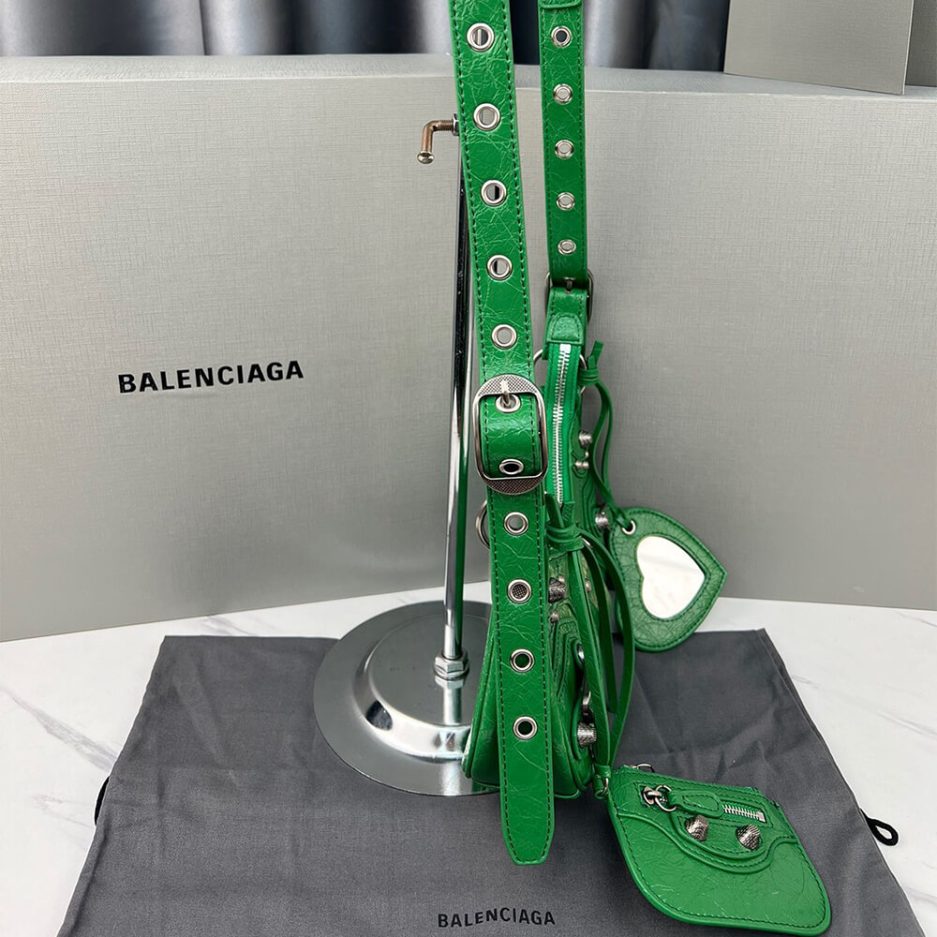 Le Cagole XS Shoulder Bag in green Arena lambskin, aged silver hardware