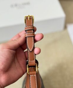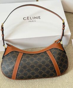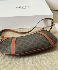 CELINE STRIPED LOGO PRINTED COW LEATHER HOBO BAG