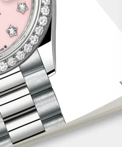 The light reflections on the case sides and lugs highlight the elegant profile of the?28 mm Oyster case, which is fitted with a diamond-set bezel. Rolex’s classic feminine watch, the Lady-Datejust is in the lineage of the Datejust, the emblematic model that has been a byword for style and accurate timekeeping.