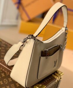 The detachable zipper bag is secured to the handbag with a detachable chain and hook fastener