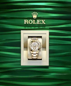 THIS OYSTER PERPETUAL COSMOGRAPH DAYTONA IN 18 KT YELLOW GOLD, WITH A WHITE DIAL AND AN OYSTER BRACELET, FEATURES 18 KT YELLOW GOLD BEZEL WITH ENGRAVED TACHYMETRIC SCALE.
