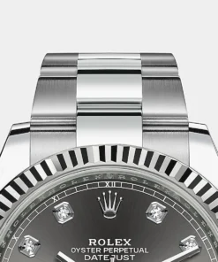 THIS OYSTER PERPETUAL DATEJUST 41 IN OYSTERSTEEL AND WHITE GOLD FEATURES A SLATE, DIAMOND-SET DIAL AND AN OYSTER BRACELET.??