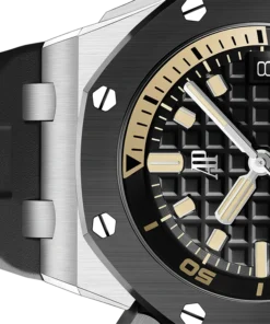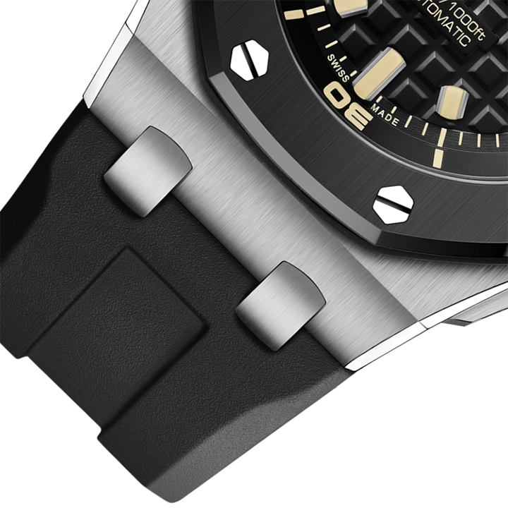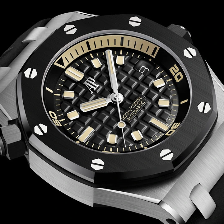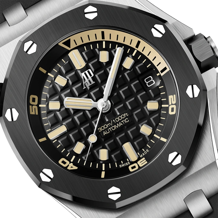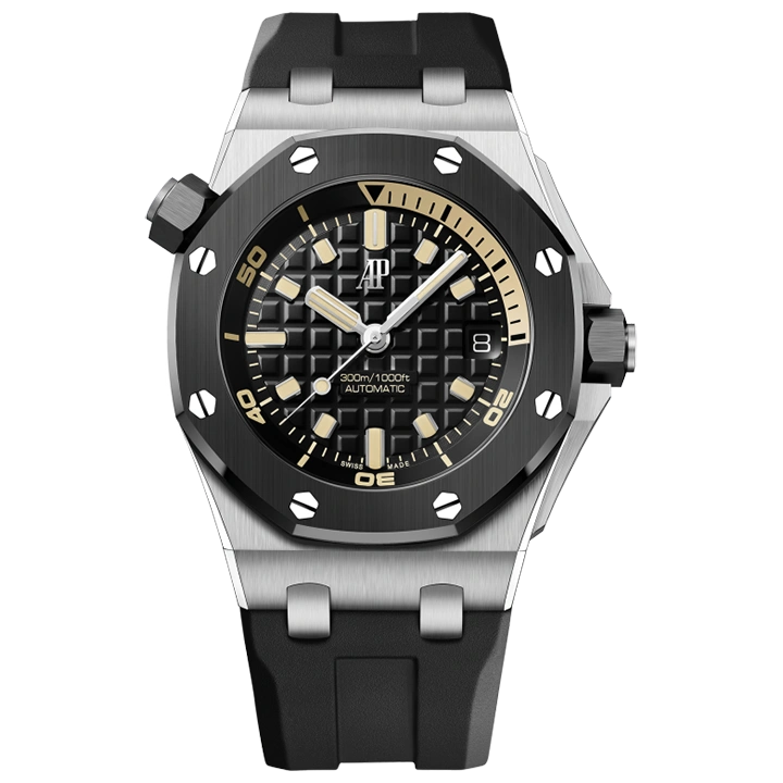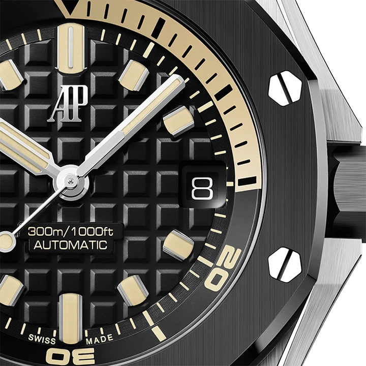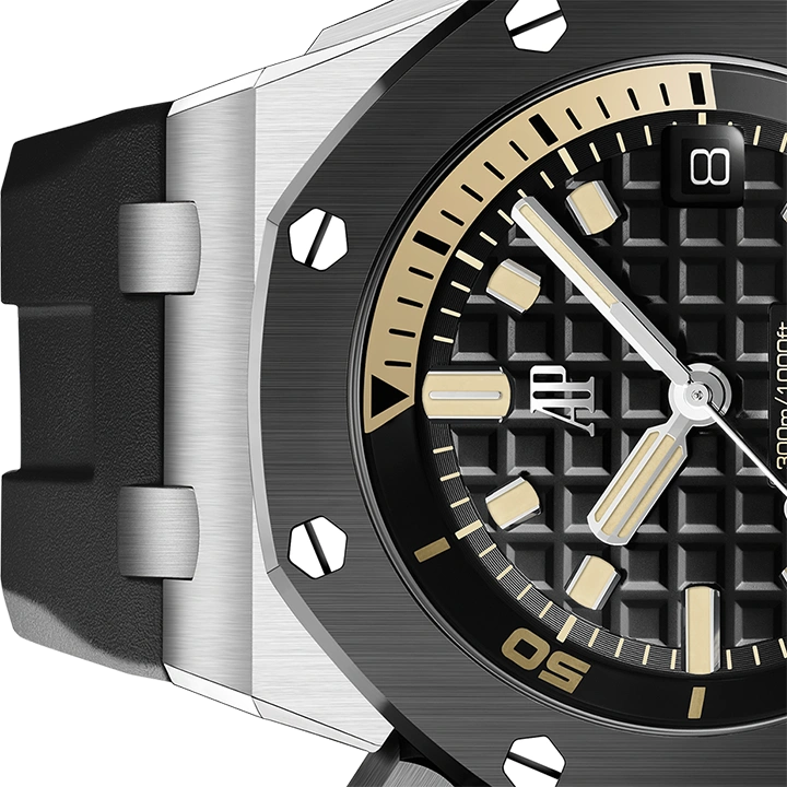This limited edition of 300 pieces combines 18-carat white gold with black ceramic. It also sports the latest selfwinding movement, Calibre 4308, the new interchangeable strap system and a dial aesthetic fit for the greatest adventures.?Available in selected Audemars Piguet Boutiques