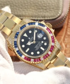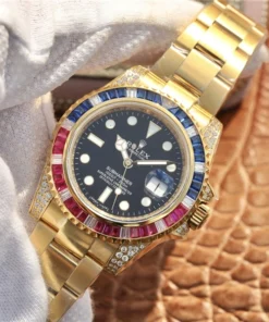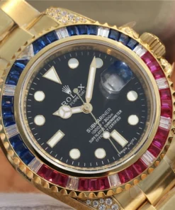 SUBMARINER GOLDEN BLUE / RED DIAMOND BLACK DIAL 40MM